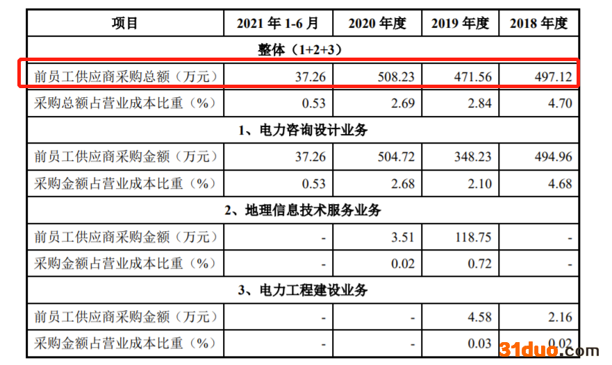 另外,经纬股份还存在向前员工及其近亲属投资或担任重要职务的供应商采购外协服务和设备的情形,采购金额分别为497.12万元、471.56万元、508.23万元和37.26万元(不含税),占各期营业成本的比例分别为4.70%、2.84%、2.69%和0.53%。