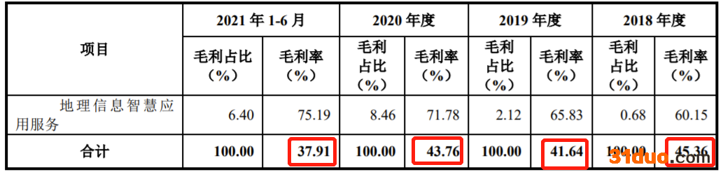 经纬股份主营业务毛利率分别为45.36%、41.64%、43.76%和37.91%。毛利的主要来源是电力工程技术服务业务,该业务毛利占比分别为74.05%、79.19%、80.81%和82.08%,占比较高。就今年上半年毛利率较2020年降低5.85个百分点,公司解释为主要是由于电力咨询设计业务施工图阶段占比较大,该阶段毛利率较低,导致毛利占比较高的电力咨询设计业务毛利率下降9.37个百分点。