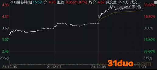 12月8日,雾芯科技(RLX.US)发布公告称,公司董事会授权一项股票回购计划,根据该计划,公司可在截至2023年12月31日的一段时间内回购至多5亿美元的股票。消息公布后,雾芯科技大涨21.87%,股价报4.76美元,市值64亿美元,较开盘价增长11.44亿美元。