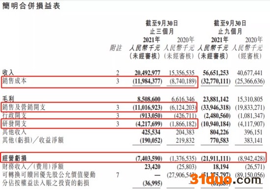 其中营业收入205亿元,去年同期为154亿元,同比增长33%。但销售成本增速达到37%,至120亿元。而经营费用的增速更为厉害,“销售及营销开支”110亿元,增长80%;“行政开支”9.13亿元,增长113%;研发开支42.18亿元增长126%。