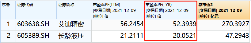 从市盈率来看,据同花顺统计,截至12月9日,艾迪精密的滚动市盈率为56倍,其所处行业滚动市盈率为30倍;相比之下,长龄液压这项数据较低,为21倍,低于行业平均水平。