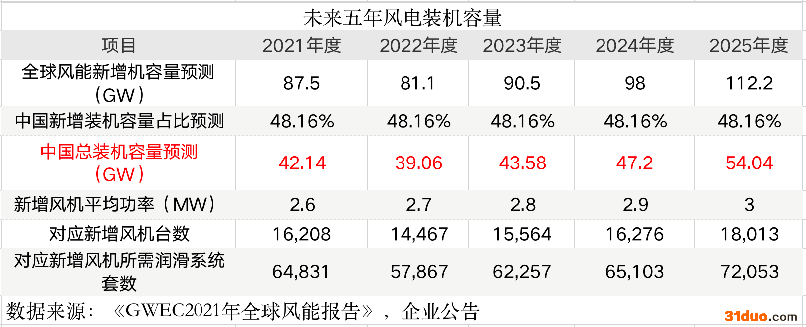 而全球风能理事会的预测则不如中信证券乐观,它预计中国装机增容量,在2022年甚至会出现下滑。同时,新增风机所需润滑系统套数更是会在2022年出现下滑,2023年这类产品的需求量也要比2021年低。