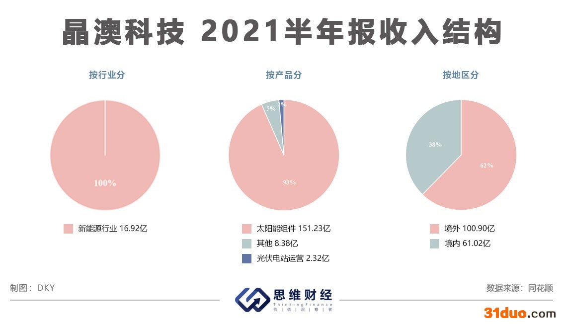 PV Infolink供需数据库统计,在2021上半年全球组件出货排名中,隆基股份在去年跃升第一后稳居首位,积极布局海外的天合光能则从第四上升至第二,第三名为晶澳科技。西南证券称,若未来原材料价格上涨,叠加公司产能建设和投放进度不及预期将可能给晶澳科技带来利润上的风险。