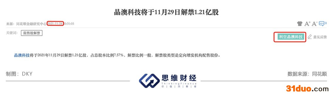11月22日,晶澳科技在触及最高点103元/股后,第二天股价闪崩一度接近跌停,短短3日内股价跌幅达14%,市值缩水近200亿元。与此相应的是,公司及子公司受到行政处罚、限售股解禁的公告接连发布。