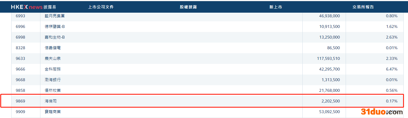 港交所数据显示,截止周四(12月9日),南下资金共持有海伦司220.25万股,占其总股本的0.17%,这些股份全部是周三一天内买入,当天海伦司股价大涨11.29%。