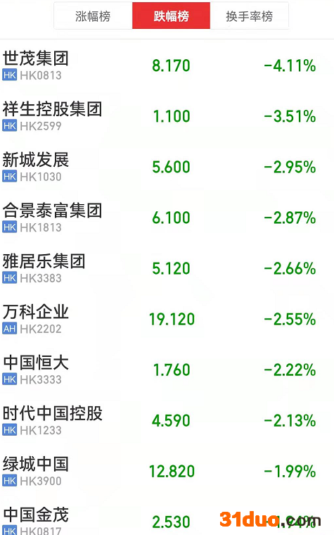 12月10日,港股内房股多数下挫。截至发稿前,世茂集团跌超4%,祥生控股跌超3%,新城发展、合景泰富集团、雅居乐集团、万科企业、