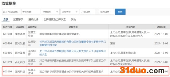 中国经济网北京12月10日讯 上海证券交易所网站于12月8日发布关于对至纯科技(603690.SH)的工作监管函,处理事由为就公司参与投资私募基金协议作废等相关事项明确监管要求。