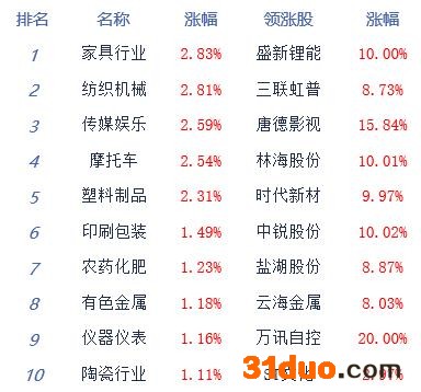 A股市场板块及个股涨跌幅排行