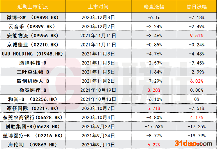 香港市场上,近期上市的新股表现皆不佳,仅少数个股在暗盘交易和首日交易中上涨。
