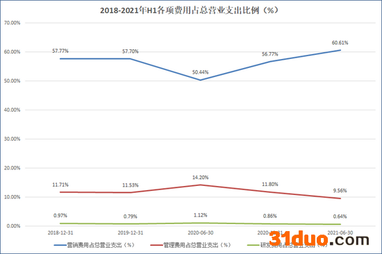 加之植发市场渗透率不高,对消费者的教育尚未完成,各大植发医疗机构的营销费用始终高企。雍禾医疗仅今年上半年就砸了近6亿元,除了在地铁站、写字楼和电影院等客流量大的传统线下站点投放广告,还在抖音、B站和微博等内容社交平台同步宣传,营销费用占总营业支出比例突破60%,而同期的研发费用仅占比不足1%,净利率只有3.83%。
