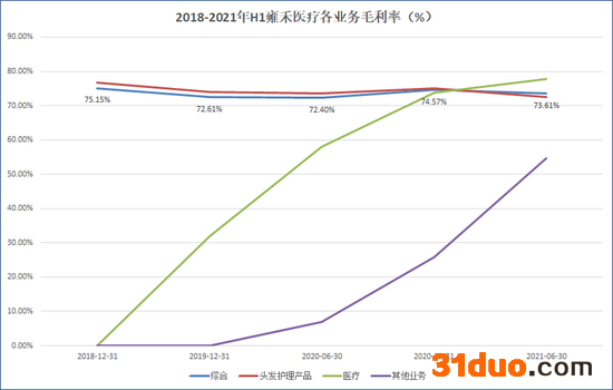 雍禾医疗的招股书披露,公司的综合毛利率常年保持在70%以上,植发类产品服务的平均毛利率高达74.38%。
