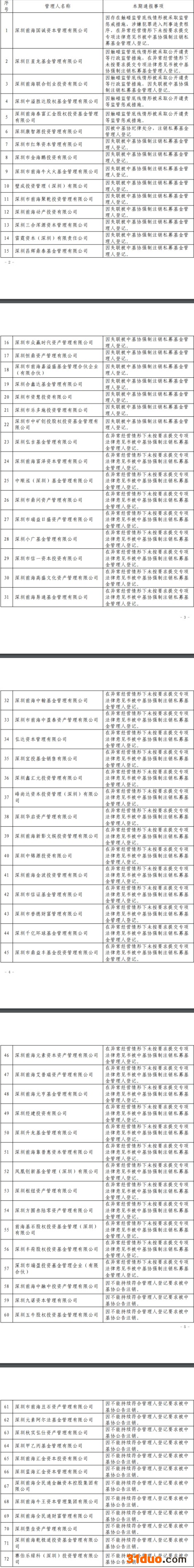 另有深圳前海中融中投资产管理有限公司、深圳甲乙丙基金管理有限公司、深圳蓝海汇金资本管理有限公司、深圳前海全民通金融资本控股集团有限公司等15家私募因为不能持续符合管理人登记要求被中基协公告注销。