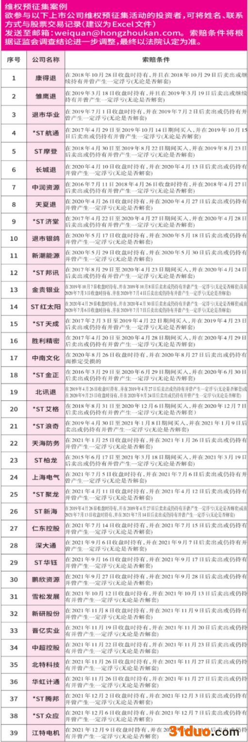 基于以上违法事实,根据相关司法解释,如果投资者于2021年12月6日收盘时持有*ST众应,并在2021年12月7日后卖出或仍持有并曾产生一定浮亏(无论是否解套)均可发起索赔,您只需将姓名、联系电话与交易记录(建议为Excel文件)发送到weiquan@hongzhoukan.com的邮箱,参与由《证券市场红周刊》“民间维权”栏目组织的索赔预征集活动,以维护自身合法权益。广大投资者在获得赔偿前无需支付任何律师费用。