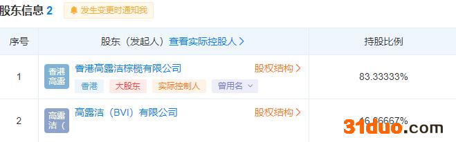 经中国经济网记者查询发现,高露洁棕榄(中国)有限公司大股东为香港高露洁棕榄有限公司,持股比例83.33%,小股东为高露洁(BVI)有限公司,持股比例16.67%。