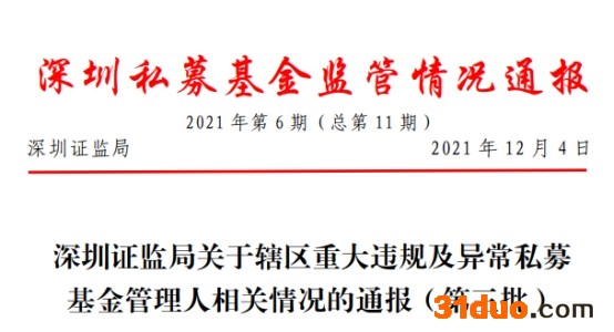 12月10日,深圳证监局发布的第六期私募监管情况通报显示,共有72家私募因为重大违规及异常的情形而被通报。