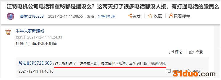 也有投资者在后面跟帖表示,“昨天就打通了,说是技术部,具体情况不知道。后匆匆挂断,唉遭心啊。”