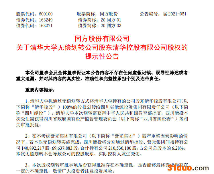 图片来源:同方股份公告截图
