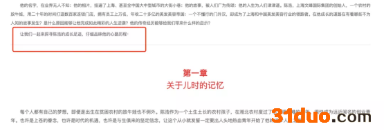 而官网首页还有《创始人陈浩创业故事连载(一)》。在这篇第一人称的文章中写到“与身边的学生和亲友们讲述自己前半生传奇经历时百感交集:苍天为之感动,大地为之震颠”。