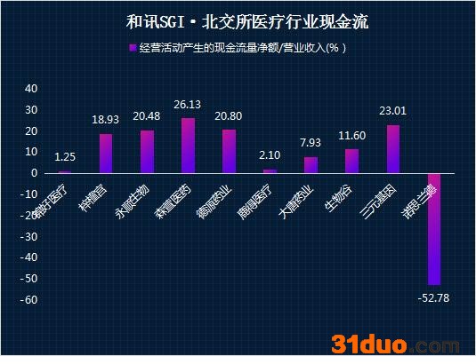 现金流方面,森萱生物、德源药业、三元基因、永顺生物较为充裕,经营活动产生的现金流量分别为1.04亿元、7842.45万元、2715.03万元、5856.09万元、分别占营业收入比为26.13%、20.80%、23.01%、20.48%。其他企业中出诺思兰德未负数外,锦好医疗、鹿得医疗最差。