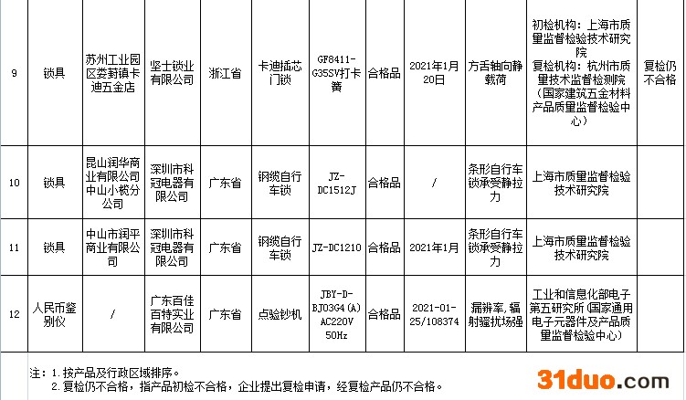 中新经纬12月13日电 国家市场监督管理总局网站13日发布《2021年安全防范产品质量国家监督抽查情况通报》,通报指出,本次抽查了228家企业生产的238批次产品,涉及安全带、安全网、锁具、人民币鉴别仪等4种安全防范产品,共发现12批次产品不合格,不合格发现率为5.0%。