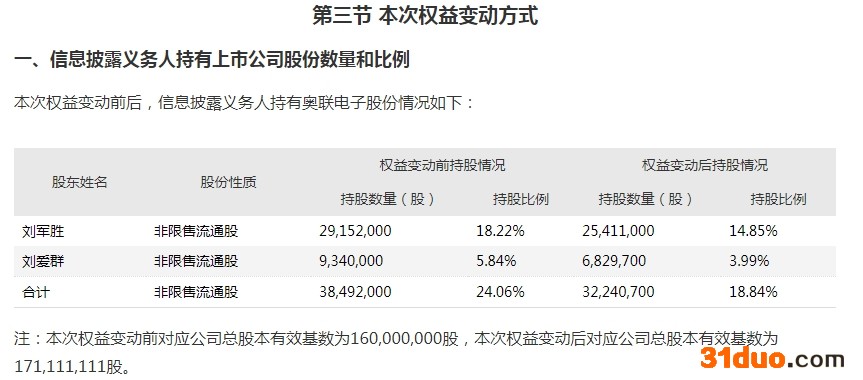奥联电子简式权益变动报告书截图