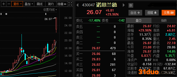 消息面上,诺思兰德和同属北交所上市的同享科技近日先后发布了向特定对象发行股票募集说明书,成为北交所开市后最先发布再融资计划的企业,山西证券谷茜表示,这体现了北交所再融资机制的常态化, 未来还将有更多北交所上市公司通过再融资机制获得资本市场的助力支持。