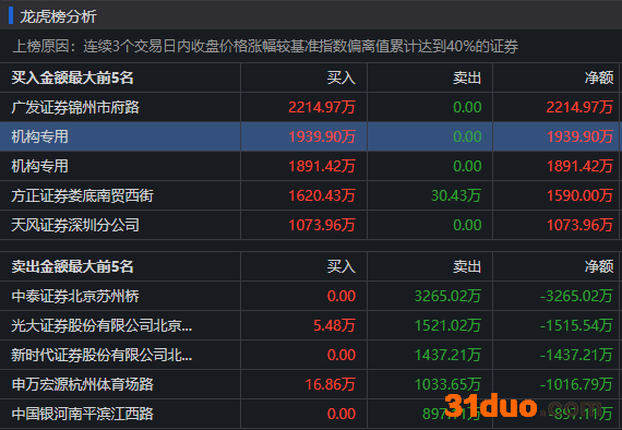 图:诺思兰德3日龙虎榜
