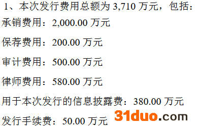 黄山胶囊本次发行费用总额为3710万元,其中,国元证券获得承销费用2000.00万元、保荐费用200.00万元,累计2200.00万元。