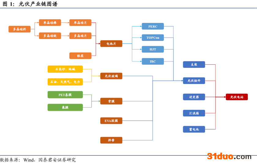 光伏产业链图谱。图片来源:国泰君安证券研报
