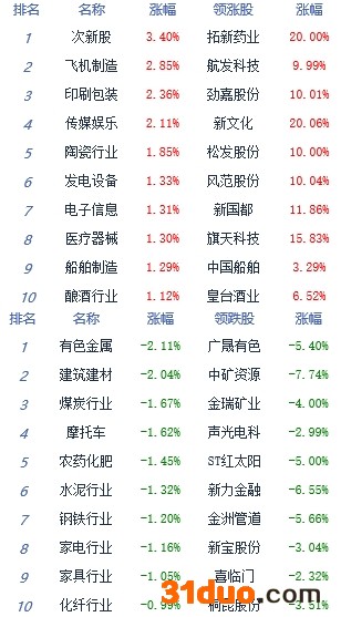A股市场板块及个股涨跌幅排行