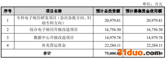 嘉和美康本次发行募集资金总额13.62亿元,扣除发行费用后,募集资金净额为12.40亿元。嘉和美康最终募集资金净额比原计划多4.90亿元。嘉和美康于2021年12月9日披露的招股说明书显示,公司拟募集资金7.50亿元,分别用于专科电子病历研发项目(急诊急救方向、妇幼专科方向)、综合电子病历升级改造项目、数据中心升级改造项目、补充营运资金。