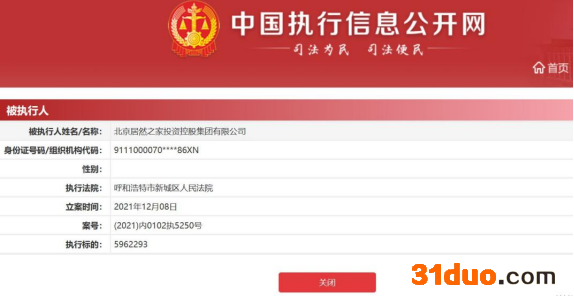 中新经纬12月14日电 (张燕征)近日,中新经纬从中国执行信息公开网获悉,北京居然之家投资控股集团有限公司(下称居然控股)12月8日被呼和浩特市新城区人民法院列为被执行人,执行标的为596.23万元人民币。