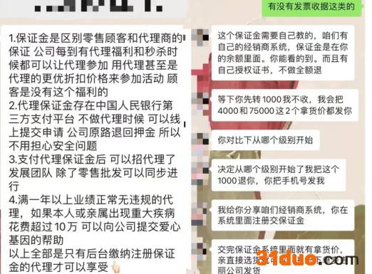 “一旦缴纳保证金,经销商系统里的余额无法提现,需要向其申请退款,公司会将保证金打卡上。”果果告诉记者,“我们总代理的保证金是10万元,也是一样操作,缴纳保证金主要避免代理商乱价。”交谈中,果果始终对“发票收据”只字不提。
