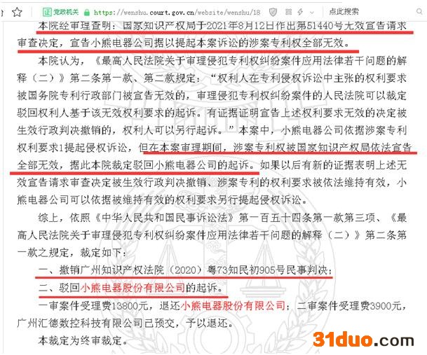 索赔款飞了?小熊电器起诉四家公司专利侵权一审被判获赔18万元、终审却被驳回起诉 法院:涉案专利权已被宣告全部无效 2021-12-14 14:46 来源:和讯网