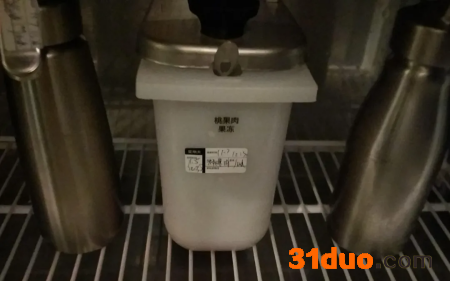 11月7日下午,在星巴克无锡震泽路店内,冰箱里存放的桃果肉已经过期,旁边的两瓶奶油也已过期。 新京报记者 韩福涛 摄