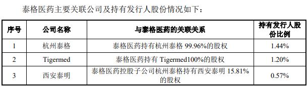 泰格医药通过杭州泰格、Tigermed合计持有派格生物2.64%股份,并通过投资多个主体间接持股0.92%。不过,派格生物并未把泰格医药列为关联方。