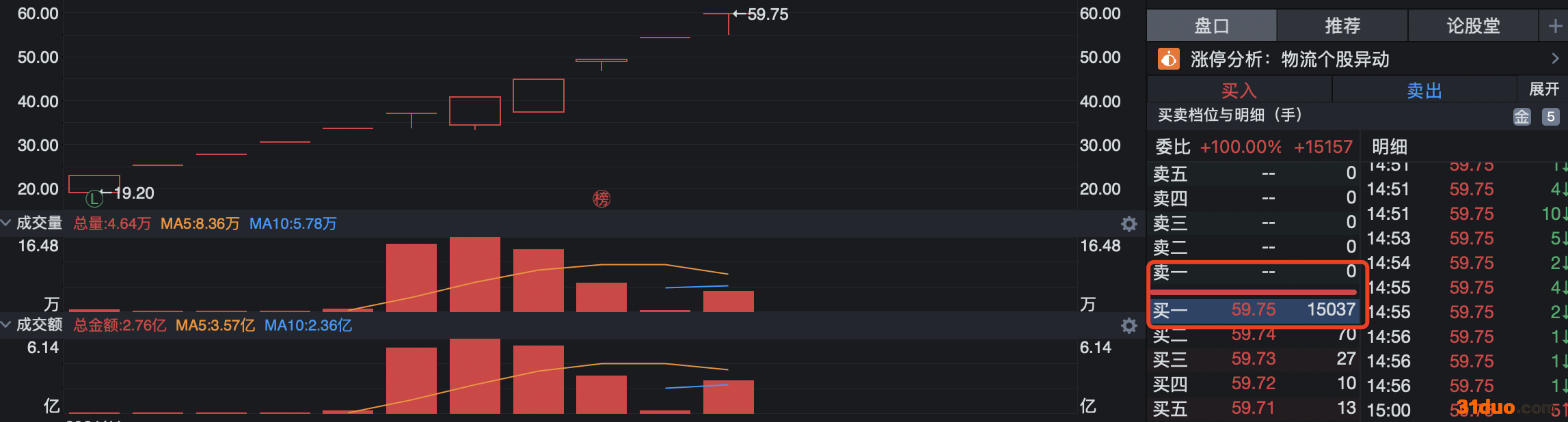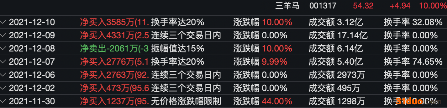 其中,三羊马上市首日开盘秒板,至今连续11日以涨停收盘,今日开盘炸板后迅速封板,截至收盘依旧有15037手封单。