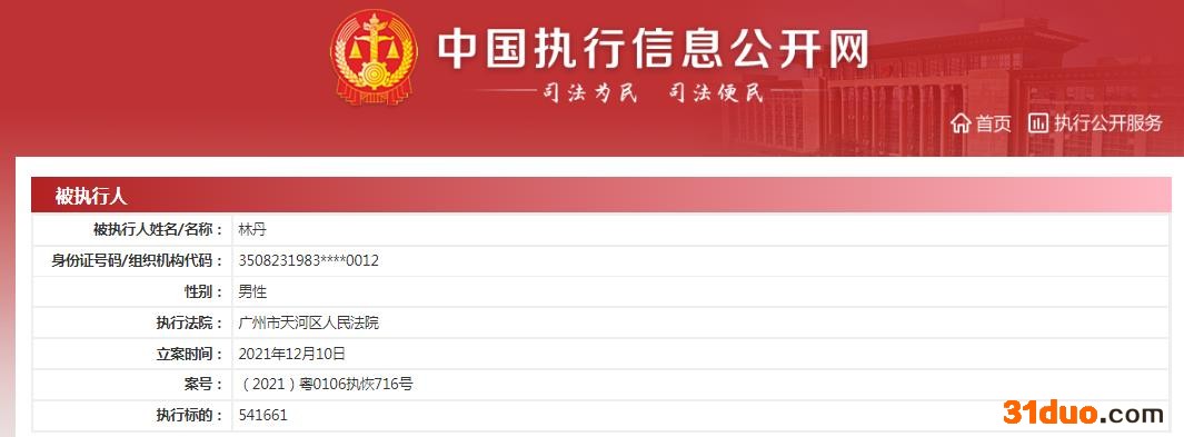 中国执行信息公开网10日披露的信息显示,林丹成为被执行人,执行标的为541661元。