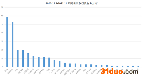 斩获腾讯投资的游戏和企业服务SaaS软件初创企业数占比总投资数约42.26%,其中企业服务SaaS软件以数据、营销、财务、法律和人力资源等垂直领域为主。