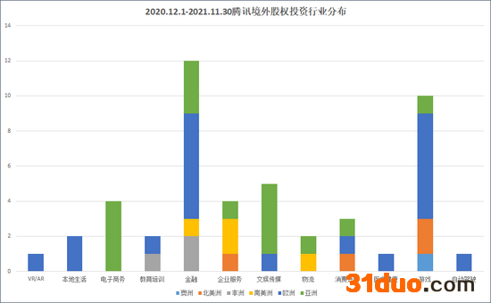 境外投资案例中,腾讯在欧洲重点投资金融支付、保险平台和游戏,而在亚洲则主攻电子商务和文娱传媒。