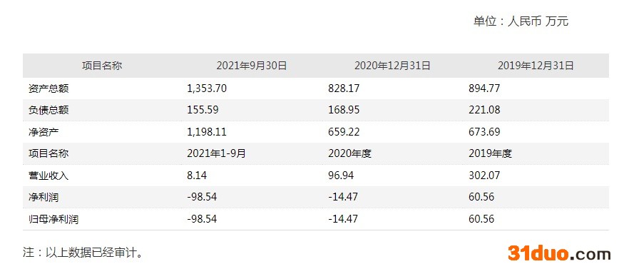 截至2021年9月30日,港中旅资产公司净资产为1198.11万元,2021年1-9月公司营业收入8.14万元,净亏损98.54万元。