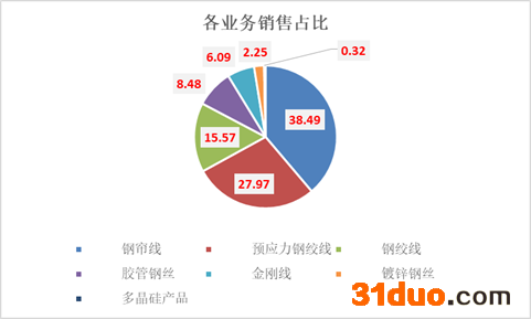 从公司产品销售占全部营收的比例来看,钢帘线、顶应力钢绞线、钢绞线占比较高,分别为38.49%、27.97%及15.57%。2020年,恒星科技营业收入为28.33亿元,同比下降16.34%。