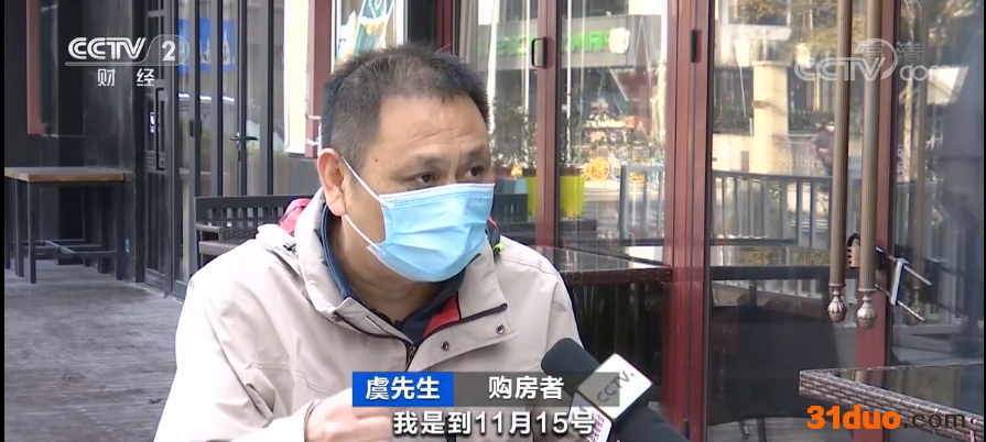 购房者虞先生:我是11月15日按照合同交完全款,16日去签正式合同的,我16日签网签合同的时候,他们指定的销售方跟我说这个合同已经停了,不能签了,他讲不清为什么。我这个房子价格比较高,要达到600多万元,我损失很大的。