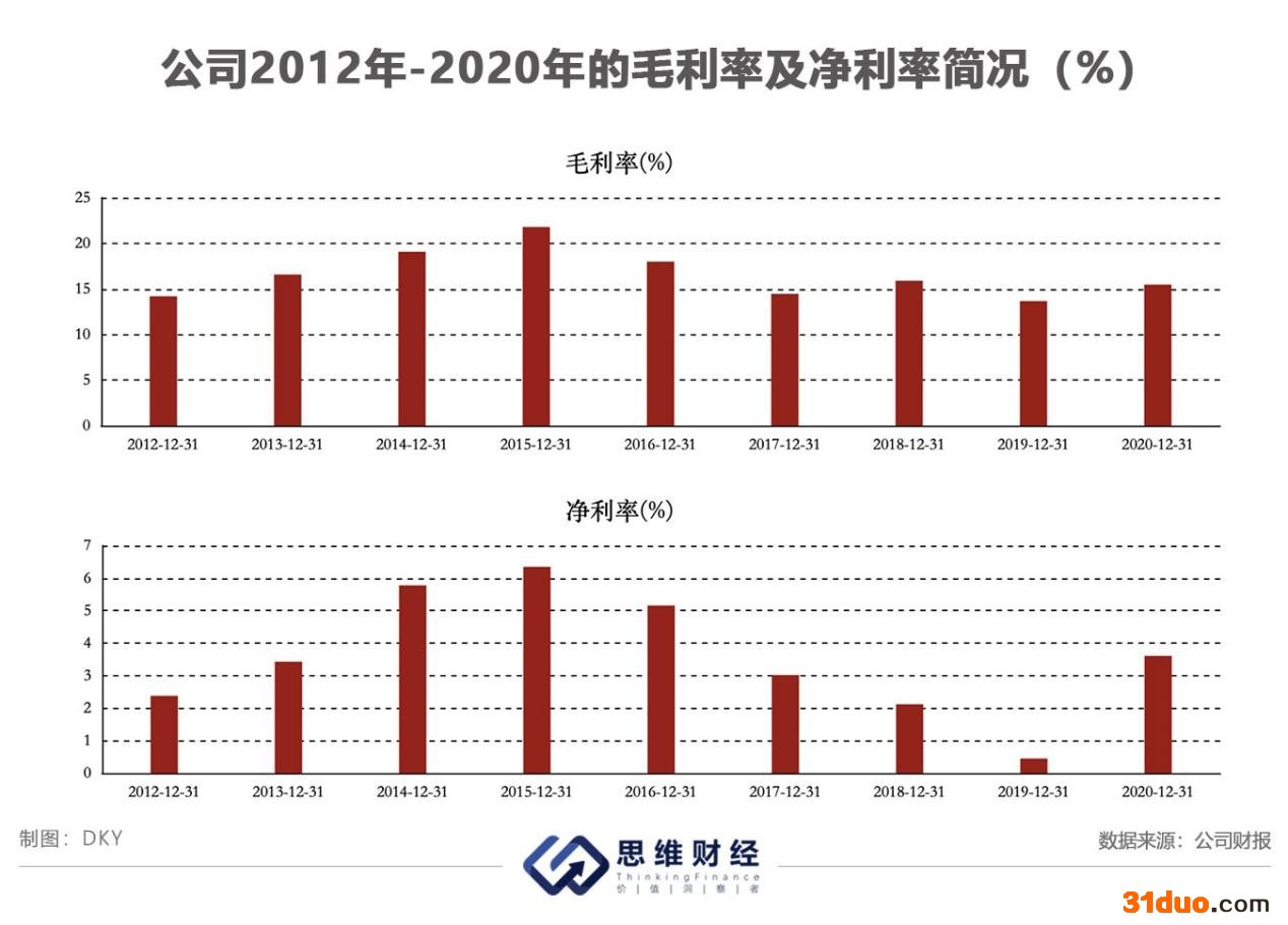 另外,公司的应收账款在2016年起也大幅增长。2015年-2021年三季度,公司的应收账款分别为5亿元、12亿元、16亿元、17亿元、16亿元、18亿元、20亿元,整体来看,公司大客户的赊销比例较大。与此同时,公司的资产负债率也随之上涨,至2021年三季度,公司的资产负债率为56%,高于同行业可比公司47%的平均水平。而在公司于今年9月发布的一笔55亿元的定增预案中,将有16.5亿元用于补充流动资金及偿还银行贷款,这从侧面反映出现金流吃紧的状况。