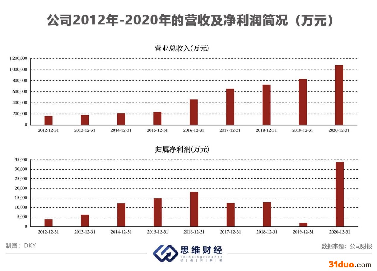 2012年至2020年,通富微电的营收年复合增速为28%,净利润年复合增速为31%。其中,公司净利润受半导体行业周期影响较大,在经历2019年的行业景气低点后,受终端需求驱动,半导体行业于2020年强势反弹,公司的净利润也因此受益,在2020年迎来大幅增长。