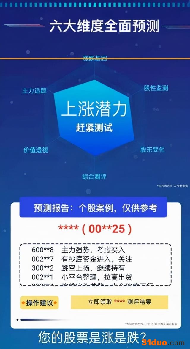 “今天股票走势如何?输入代码立即测一测!不分成不收费!”广告标语如是说道。