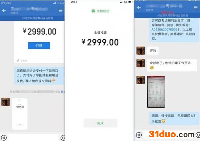 “湖南金证公司的业务员在微信上发他们公司推荐的股票,当天买了第二天卖就能赚五个点以上,让我跟他们合作给他们交钱,说的天花乱坠的,几乎每天都可以赚百分之五以上。然后因为被他们诱骗,我当月给他们支付了2999元。可是,不管是他们软件上推的票或者是他们推的票都与之前他们宣传的完全不符,严重夸大其词,虚假宣传诱骗引诱股友上当受骗。买了他们的票基本上都是买了就被套,买了就亏损。买了他们推的股票已经亏了好几千了,经常买了还亏好几个点,希望能退回我交的2999元。”一位在湘问·投诉直通车平台上投诉的消费者说到。