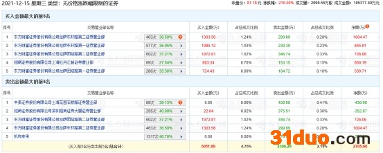 中国经济网北京12月15日讯 今日,华研精机(301138.SZ)因属于无价格涨跌幅限制的证券而登上龙虎榜。华研精机收报81.18元,涨幅210.20%,成交额10.54亿元,换手率73.65%,振幅328.62%,总市值97.42亿元。