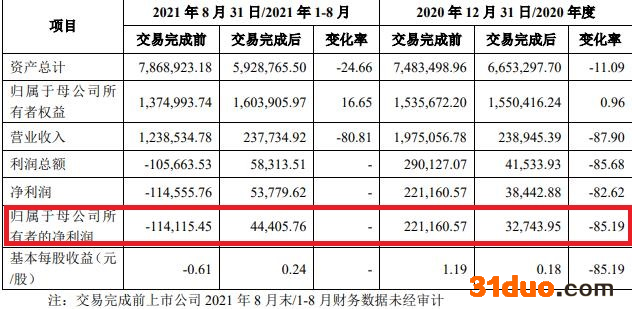 根据广宇发展2020年度和2021年1-8月财务数据以及立信出具的备考审阅报告,本次交易对公司主要财务指标的影响如下: