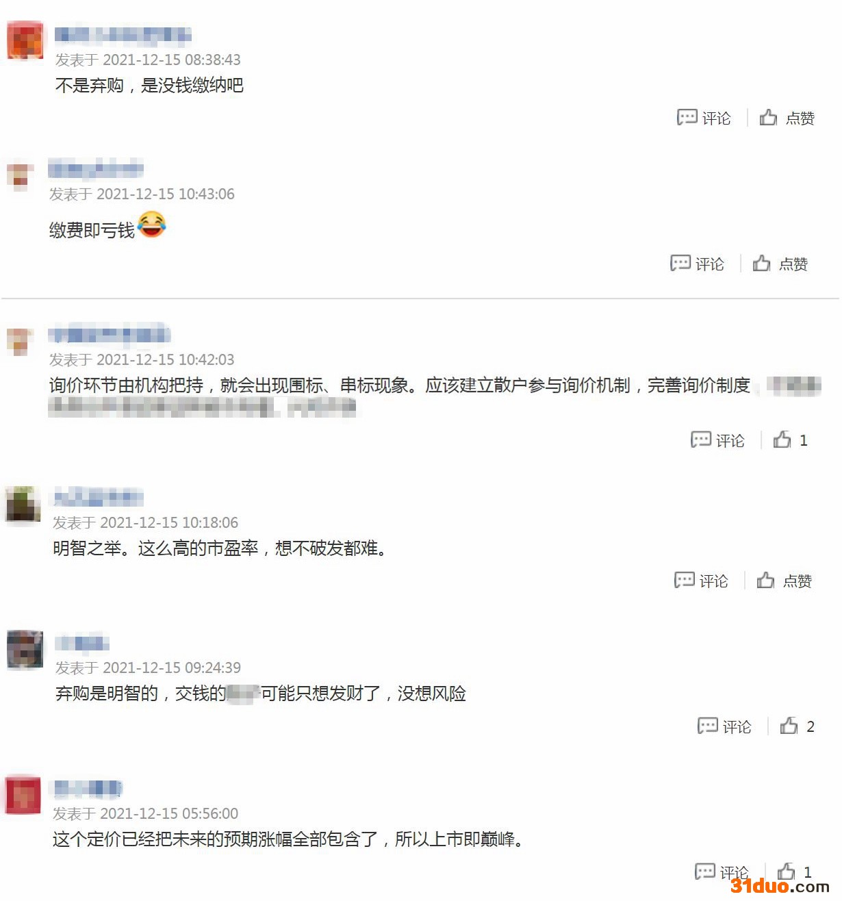 更有投资者直言:“明智之举,这么高的市盈率,想不破发都难”“这个定价已经把未来的预期涨幅全部包含了,所以上市即巅峰”。